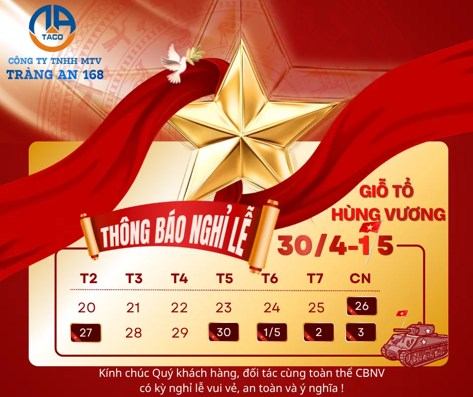 Công ty Tràng An 168 xin trân trọng thông báo lịch nghỉ lễ như sau: